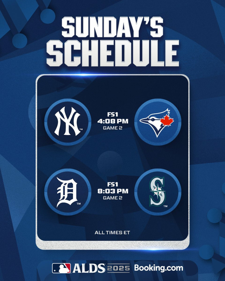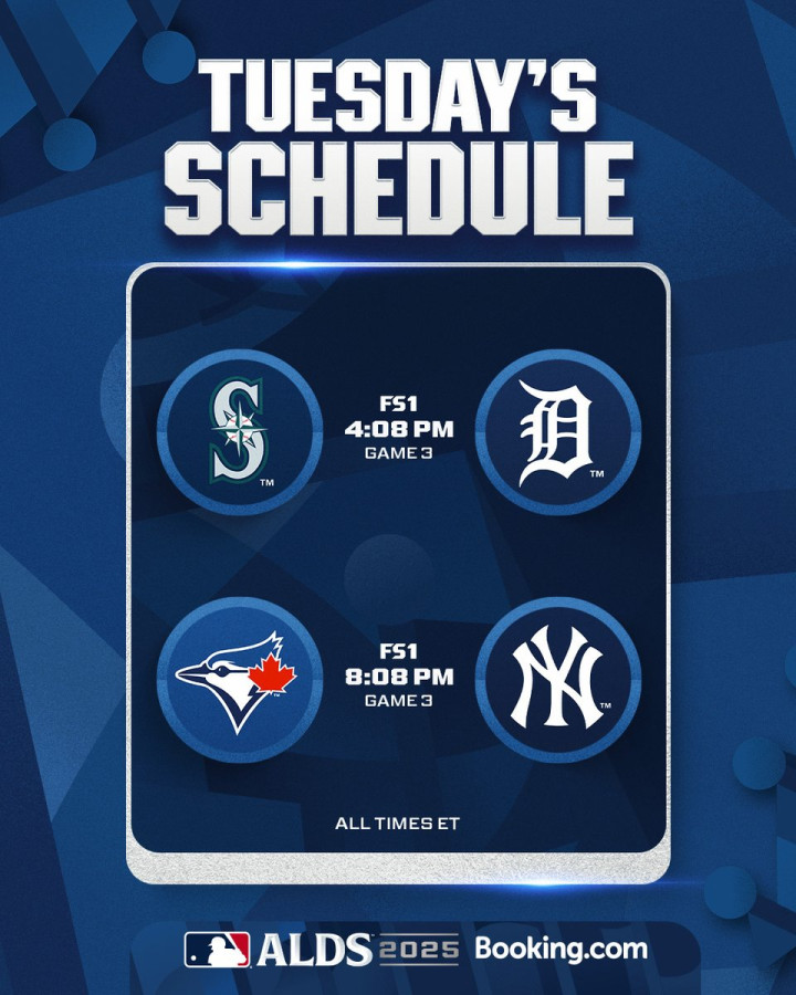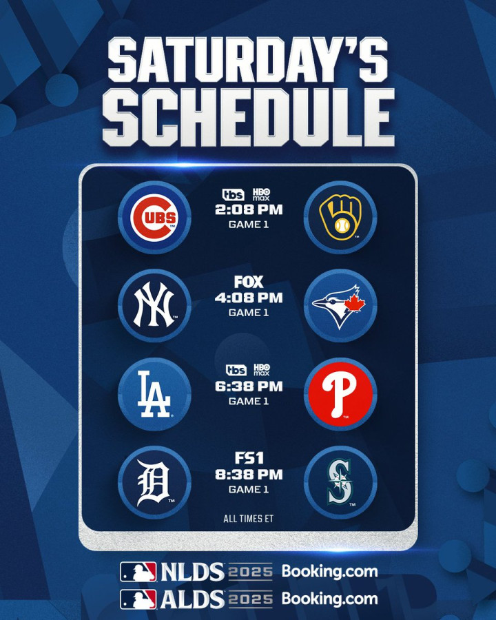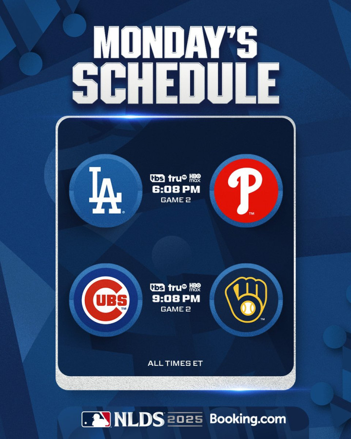 MLB官方X账号发推特报道,2023年MLB季后赛四场分区系列赛将于明日正式开战!以下是截至周二的全平台观赛日程表。(MLBx@bookingcom)